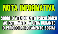Caros (as) discentes da UFRA, Esperamos que todos (as) estejam bem. Devido ao momento atípico que estamos atravessando em função da pandemia de COVID 19, manteremos suspensos,...