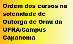 Informamos que a solenidade de Outorga de Grau da UFRA/Campus Capanema a ser realizada no dia 31.01.2020 será no auditório do Colégio São Pio X, na seguinte ordem: Engenharia...